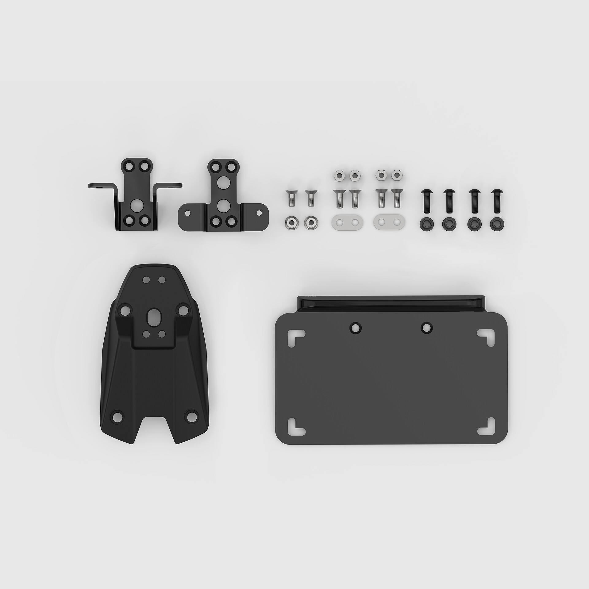 Guidato dalla ricerca della perfezione, il supporto targa in alluminio presenta punti di montaggio asolati e un profilo ultrasottile per minimizzare le masse non sospese e mantenere il sistema leggero e orientato alla performance.