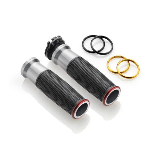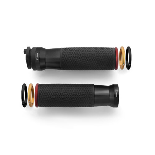 Der zur Gänze aus Aluminium gearbeitete Griff Urlo (Ø 22 mm) zeichnet sich durch seine ergonomische Form aus und die spezielle Bearbeitung des Gummis sorgt für maximalen Grip. Die austauschbaren Aluminiumringe in verschiedenen Farben ermöglichen zudem eine individuelle Gestaltung. Die Ride by Wire -Version ist zudem mit der elektronischen Gasbetätigung kompatibel.