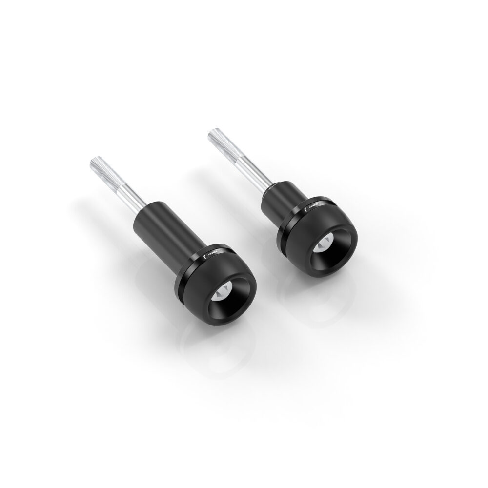 Das Trägerelement ist aus Aluminium aus dem Vollen gearbeitet, während der im Fall eines Sturzes einfach austauschbare Slider aus Delrin® besteht.