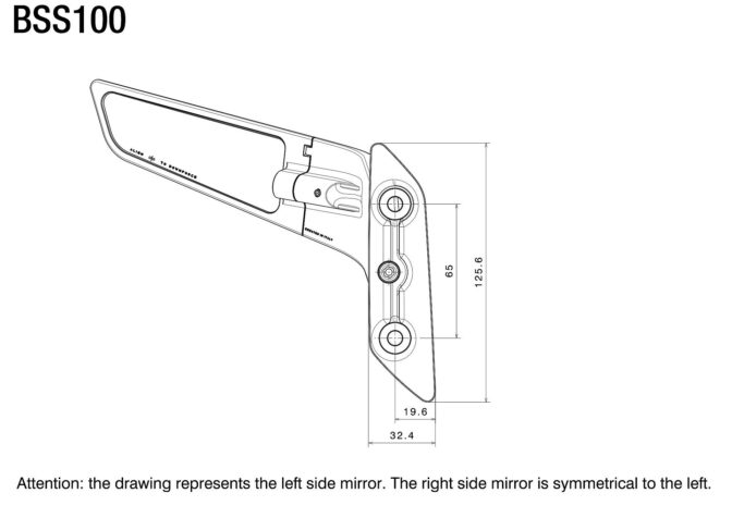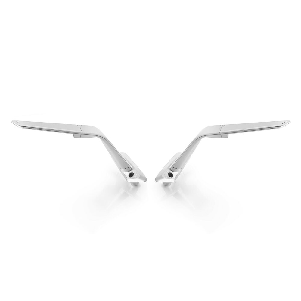Die auf diese Weise erzielte Flügelform und die 25°-Neigung zum Boden verleihen den Spiegeln nicht nur einen puristischen Look sondern sorgen auch für einen Anpressdruck und einen höheren Grip des Motorrads um die Fahrbarkeit insbesondere bei hohen Geschwindigkeiten zu verbessern. Der erzielte Anpressdruck beträgt ca. 4 kg bei 300 km/h.