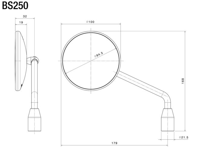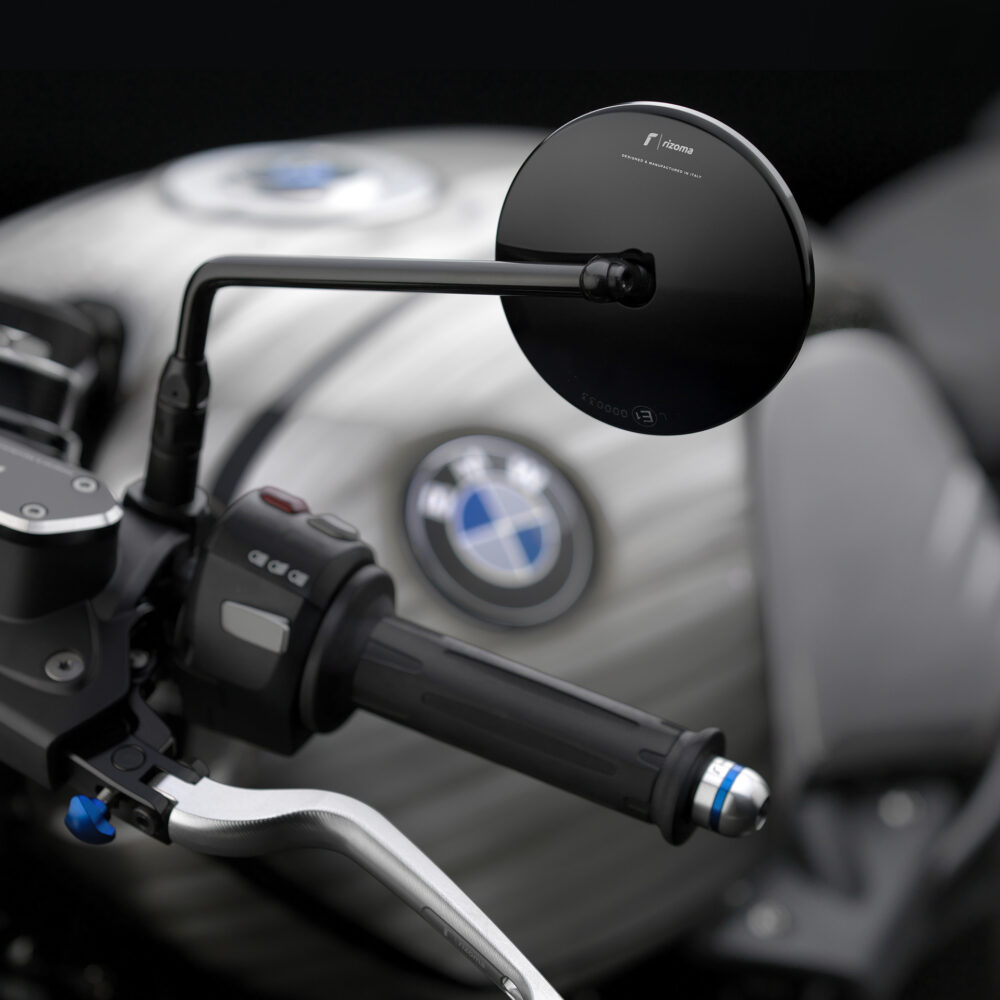 One rear-view mirror, entirely made of billet aluminum, offers a wide reflective area enclosed in a rounded shape. The direct mount together with the convex glass and antiglare guarantee an optimal field of view.
