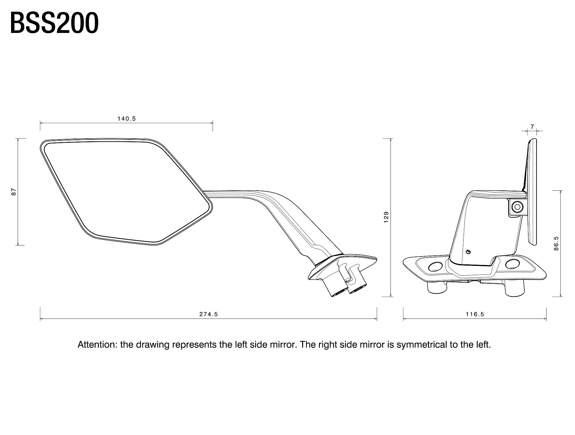 Stealth mirrors are engineered with high-definition glass. Their convex geometry, combined with a blue-tinted surface, delivers exceptional visibility, offering a reflective area of 7544 mm² for enhanced safety and precision. Crafted from premium aluminum and techno-polymer, it combines high-performance materials.