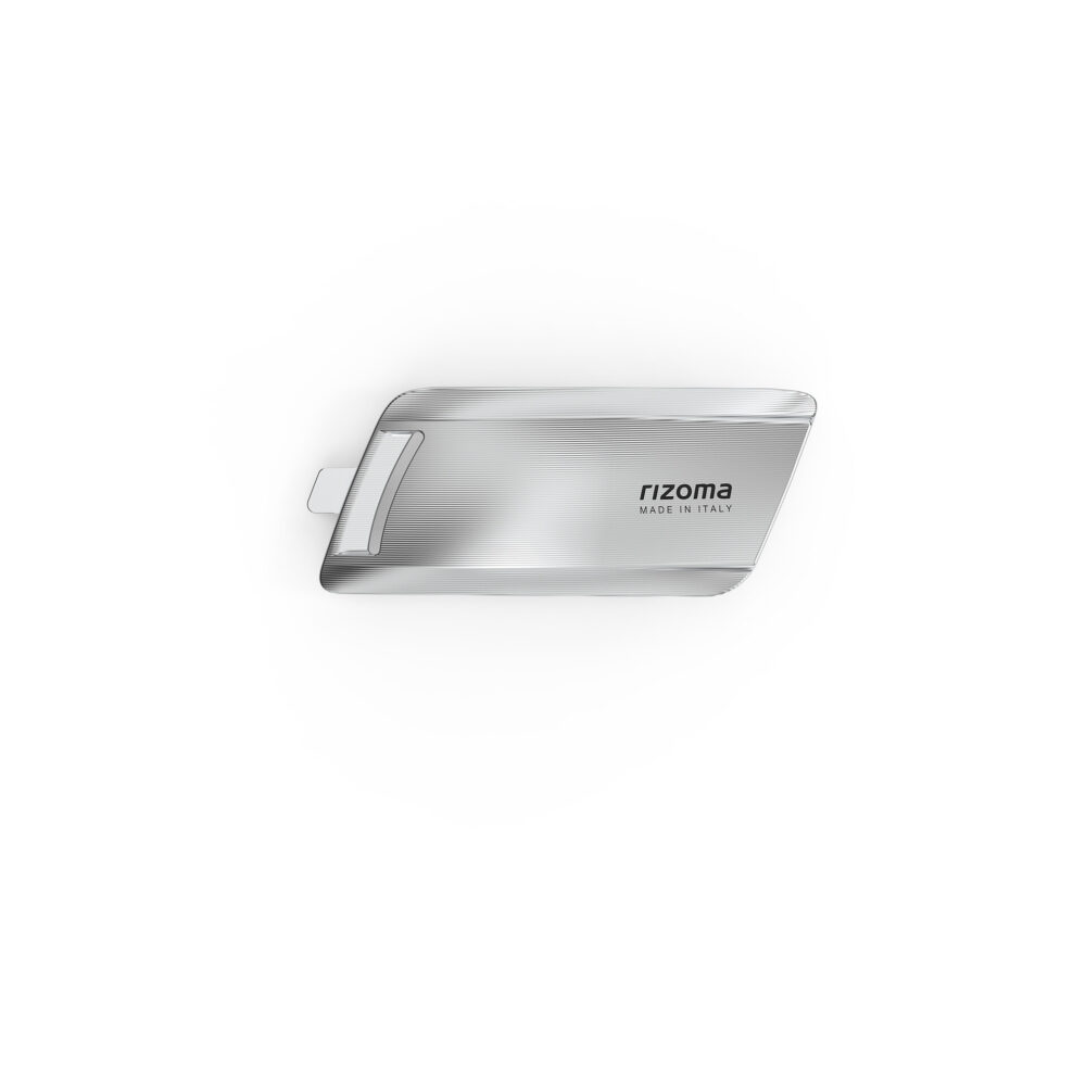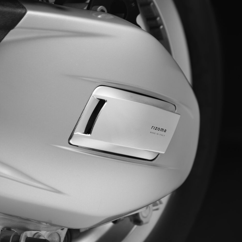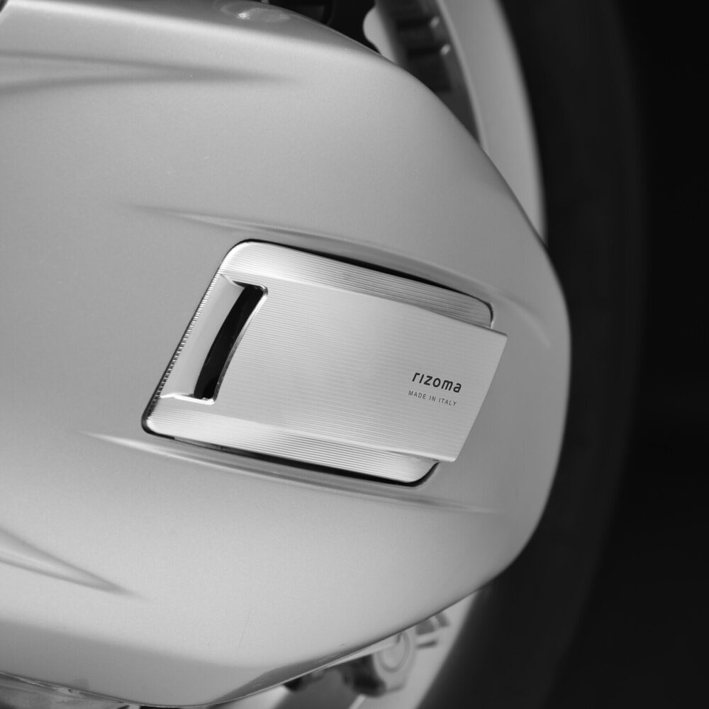 The engine cover for Vespa is completely made from billet aluminum and is embellished with an elegant longitudinal texture. The innovative design features two openings, one in the front and one in the back, designed to improve airflow. Available in Silver and Black.