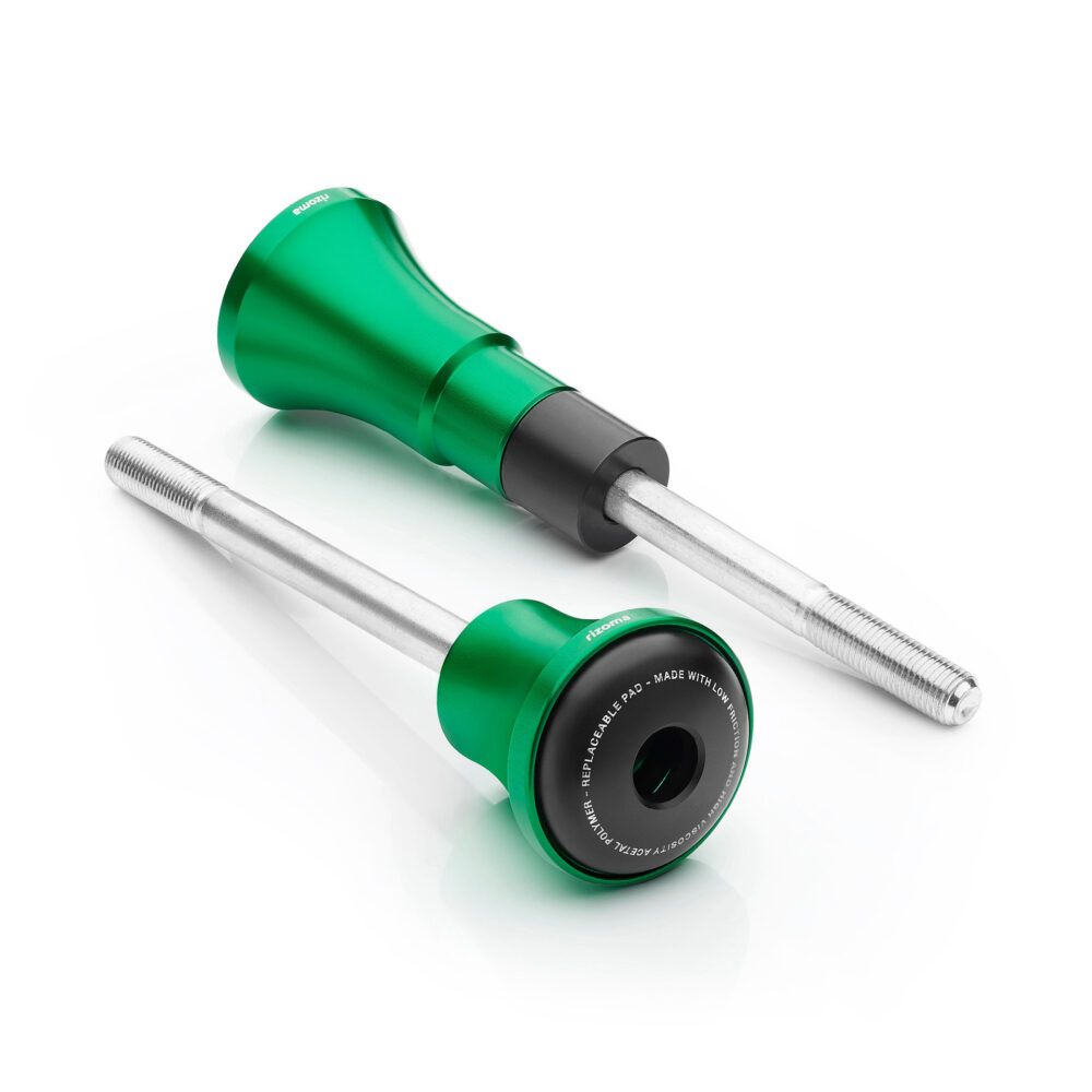 The main body is made from billet aluminum while the slider is made from Delrin®, which allows easy replacement in the event of an accident. Born out of a special focus on supersport motorcycles and their use on the racetrack, they combine utmost attention to detail, ensuring they offer performance and act as appealing design features.