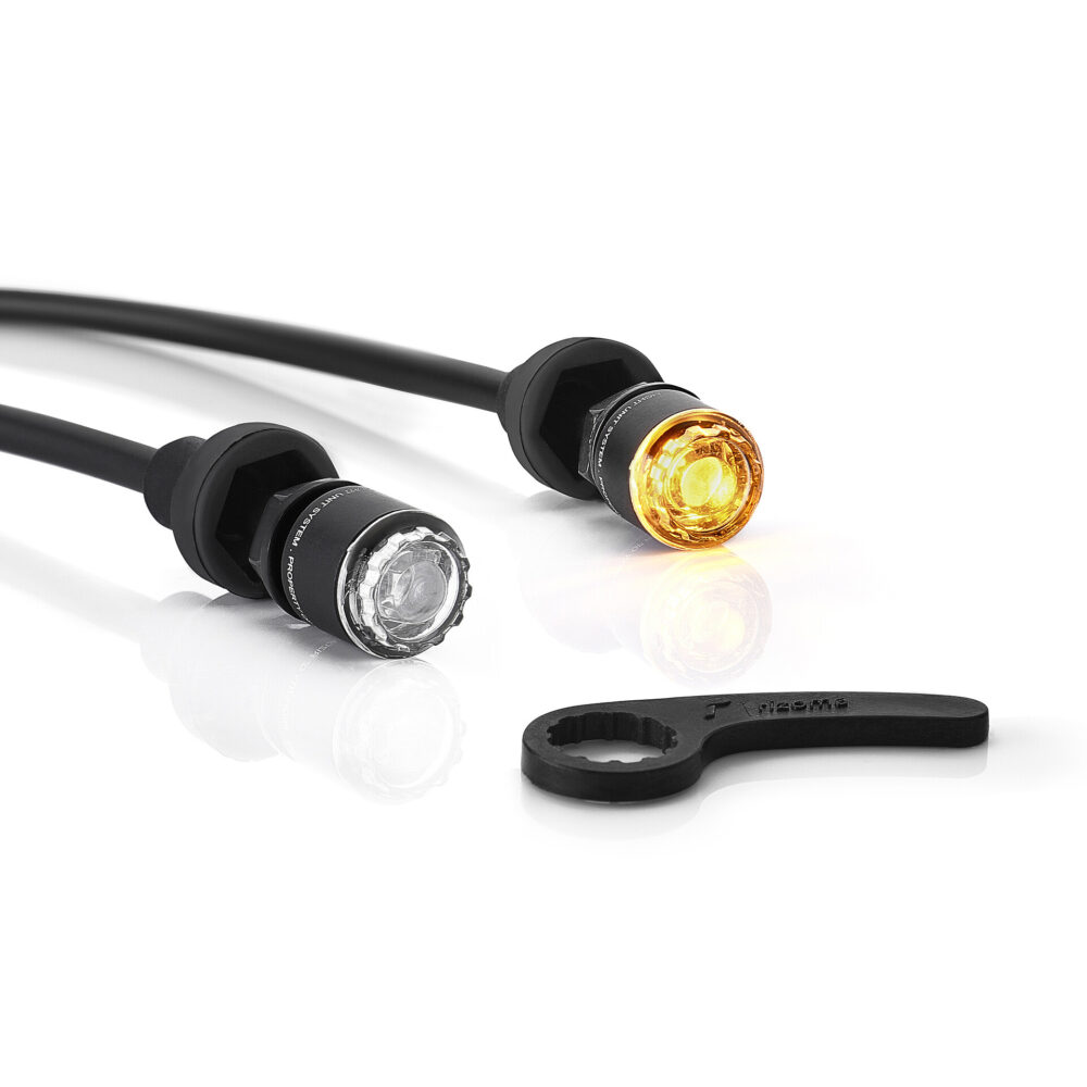 The product includes numerous installation accessories, compatible with both OEM configurations and other options. Light Unit adapts to various mounts, such as those for mirrors or license plates, thanks to dedicated Rizoma kits.