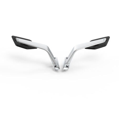 El espejo retrovisor e-pop se caracteriza por la combinación de dos materiales diferentes. Parte estructural en aluminio mecanizado mediante procesamiento 3D y cuerpo de espejo en tecnopolímero con textura Altera.