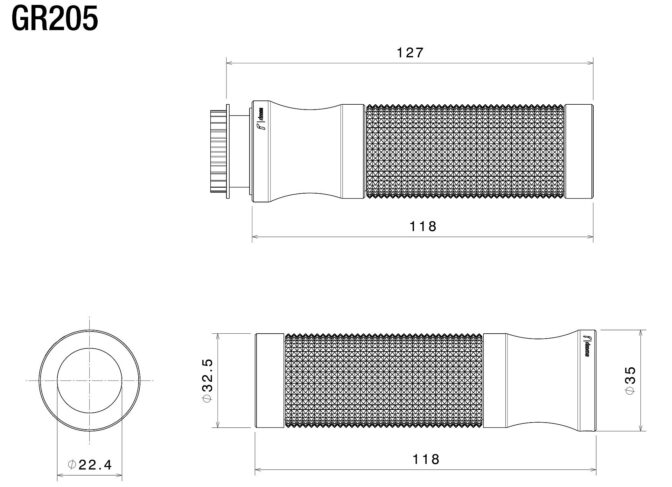 El puño Sport (Ø 22 mm) combina sencillez y deportividad. En aluminio mecanizado a partir de un bloque macizo y dotado de una goma racing que asegura agarre y fiabilidad.