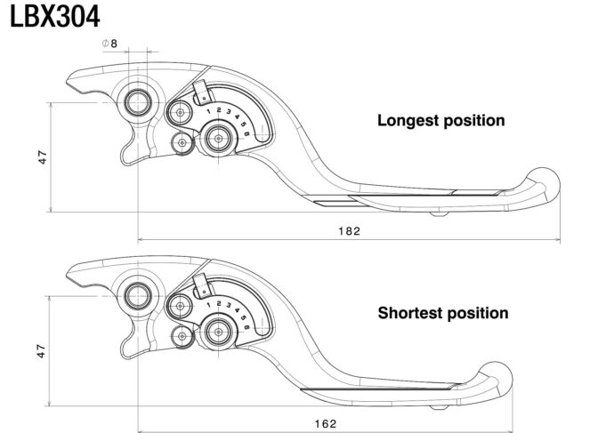 Las manetas Adjustable Plus están diseñadas para ofrecer el máximo confort en términos de agarre y regulación para adaptarse a cualquier estilo de conducción. Así, junto con el mecanismo de control de la distancia entre la maneta y el puño, situado en la parte superior para permitir una mayor accesibilidad, hay un sistema de deslizamiento adicional en horizontal que permite ajustar la longitud de la maneta. Además, el kit incluye un inserto de goma diseñado para tapar el hueco creado cuando la palanca está en su máxima extensión (hasta 20 mm), evitando así un deterioro excesivo del guante. Las manetas Adjustable Plus, fabricadas en aluminio billet de alta calidad, están disponibles en diferentes colores anodizados.