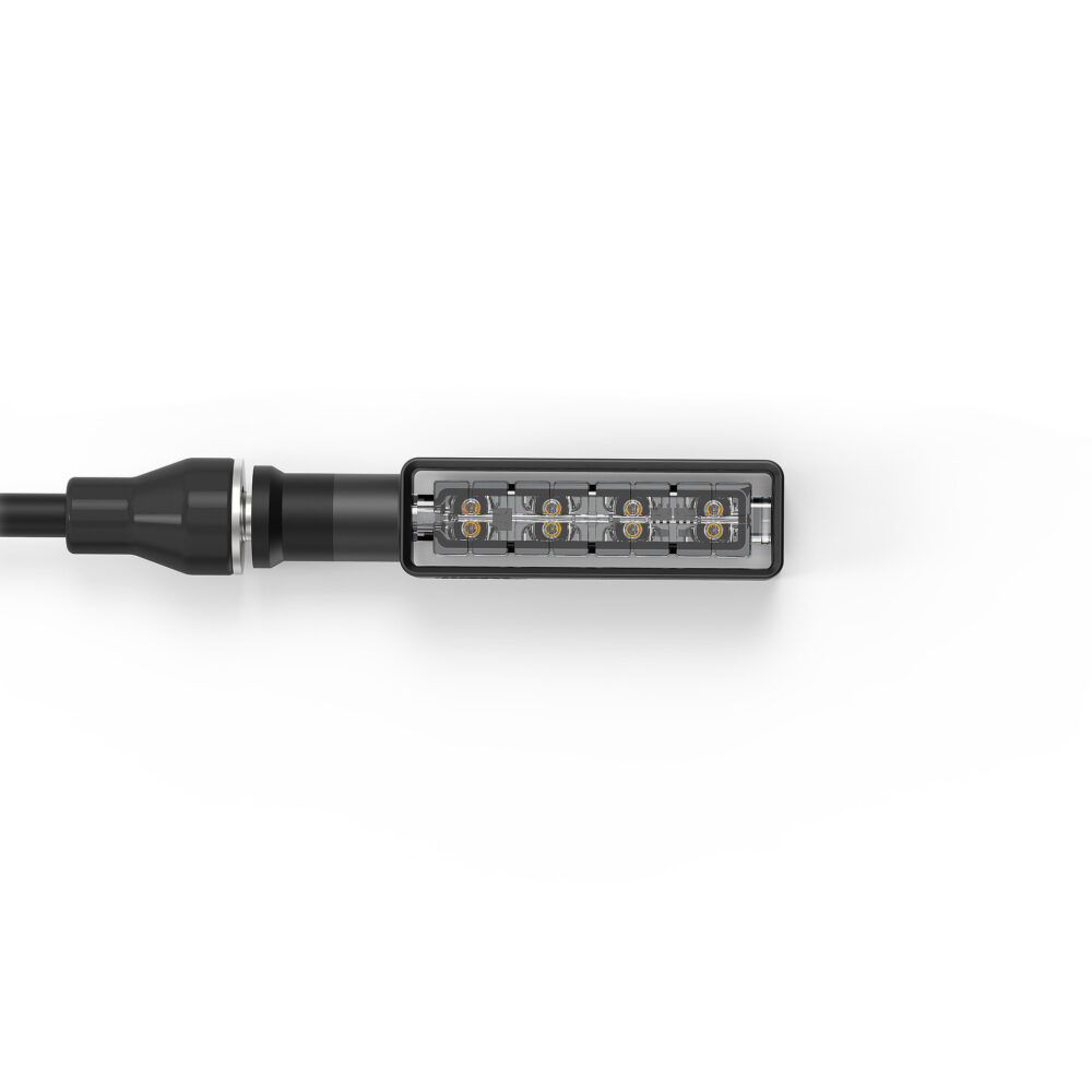 Huit LED SMD haute performance produisent un clignotant séquentiel fluide et très visible dans un format compact.