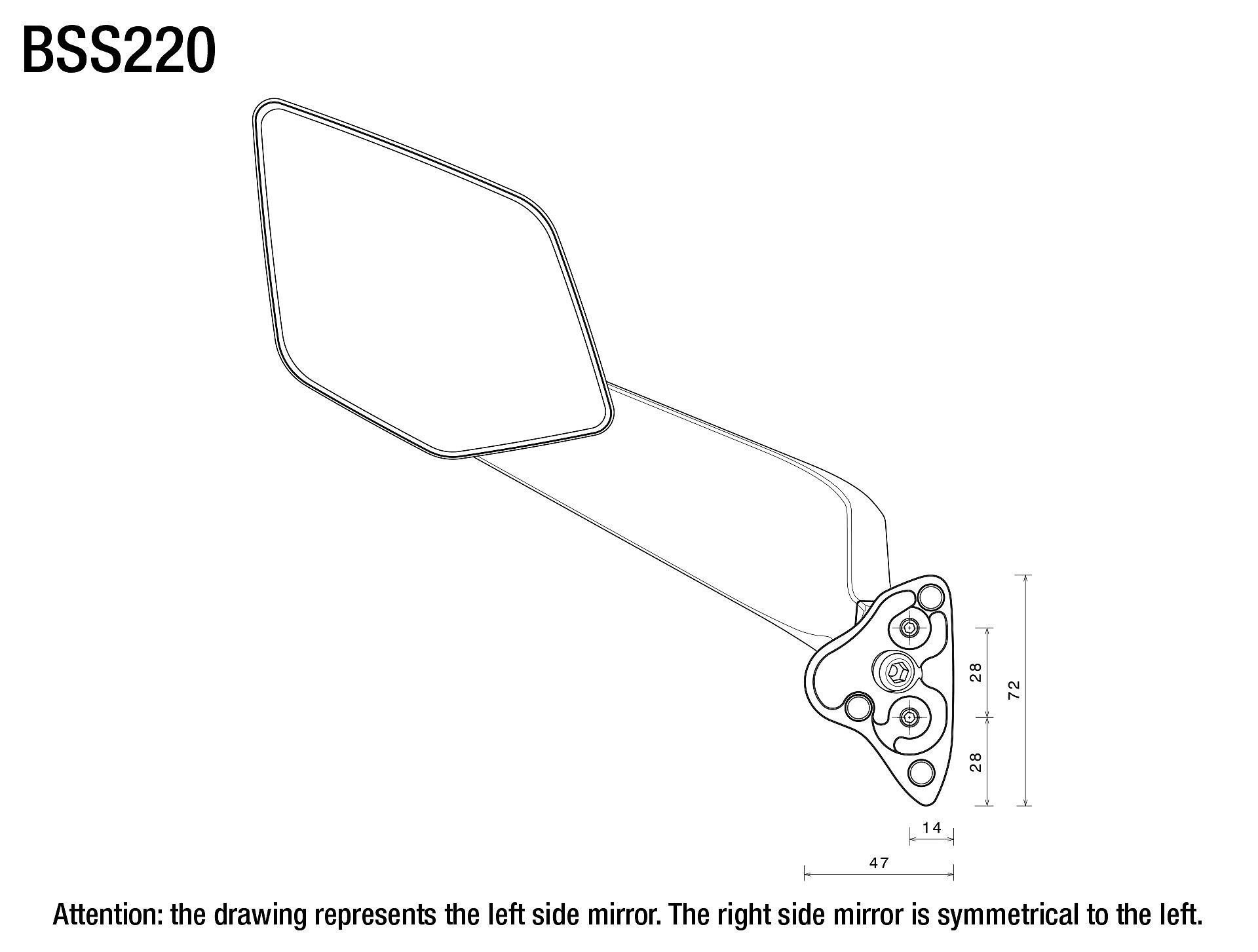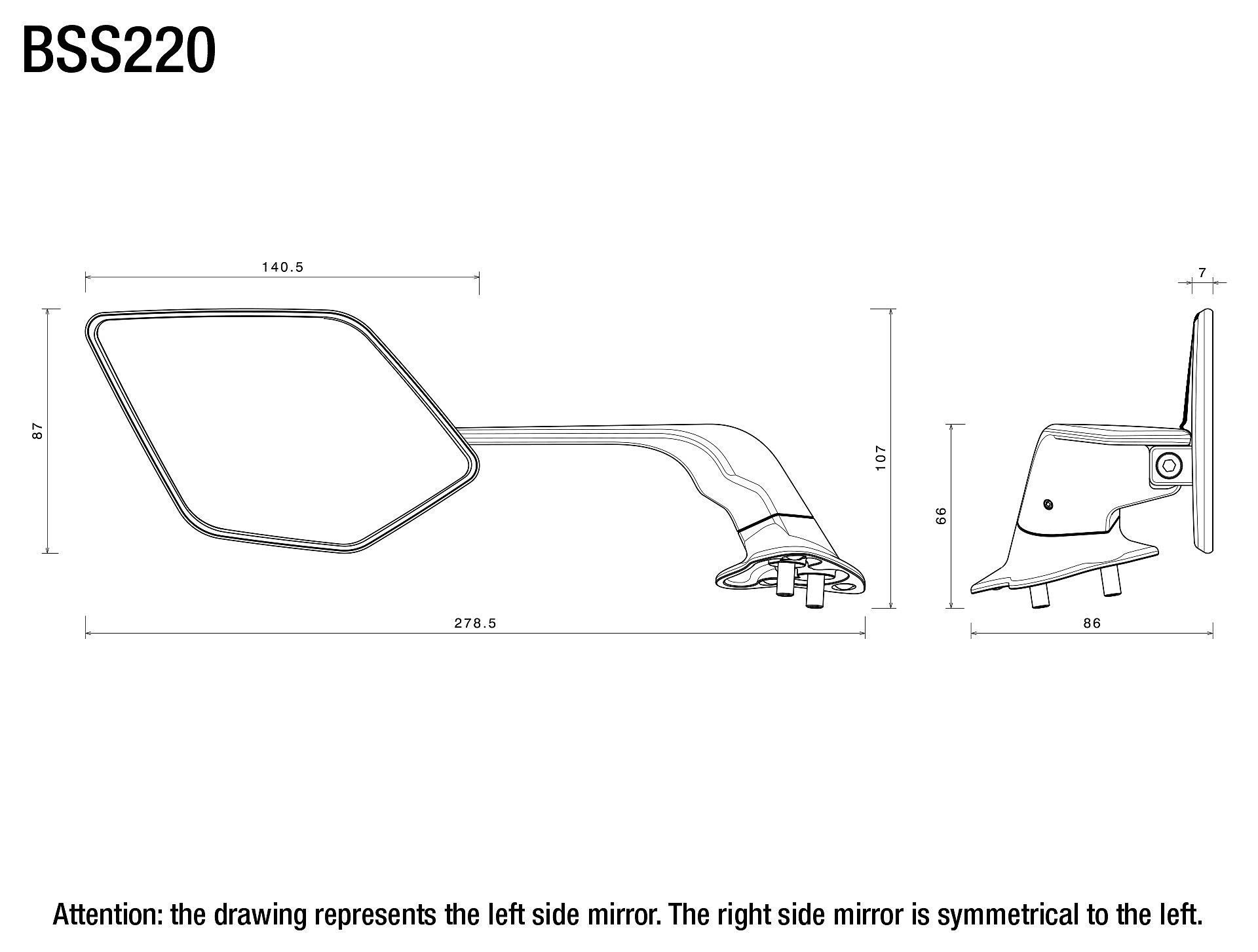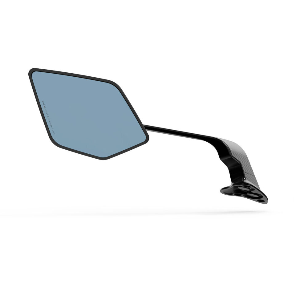 Corps en aluminium usiné dans la masse et anodisé, support de miroir en technopolymère avec une texture spécialement étudiée pour améliorer les performances aérodynamiques.