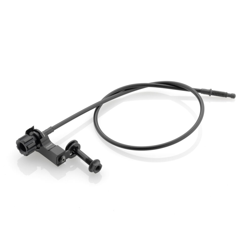 Le kit de réglage déporté comprend : une molette de réglage déporté du levier de frein, un câble (longueur 500 mm), un bracelet de fixation au levier d’embrayage.