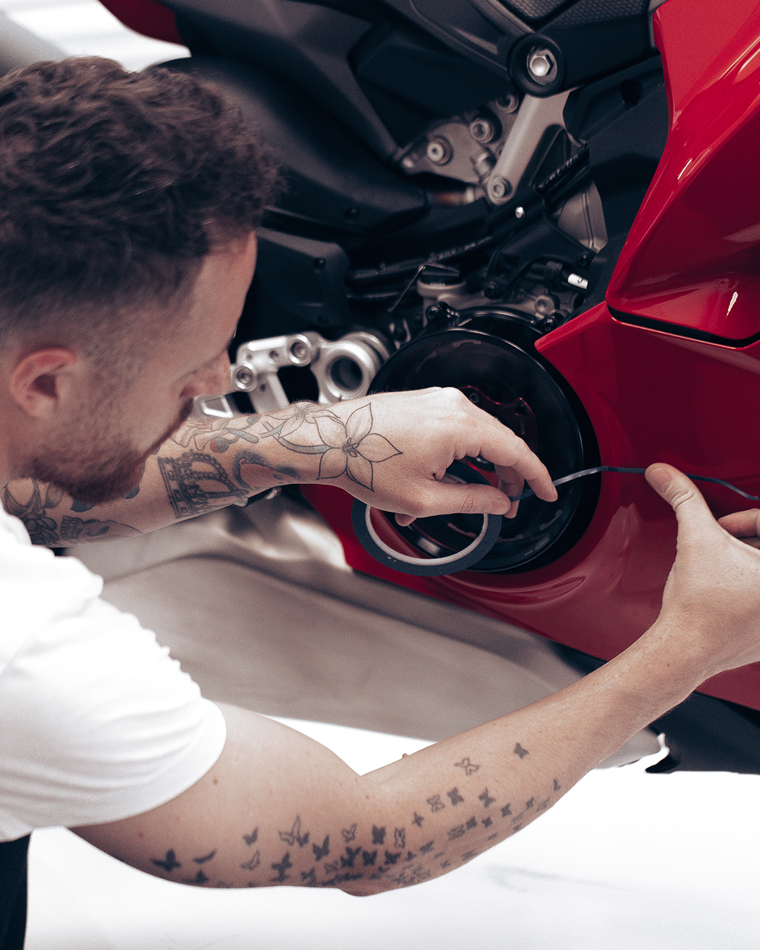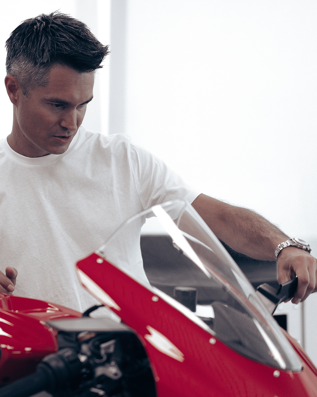 Non riesco a guardare una moto senza metterci del mio anche su parti che non mi competono. Che sia una grafica, un logo, un color design… persino l’abbinamento con il casco o con l’abbigliamento. Tutto deve parlare la stessa lingua.”