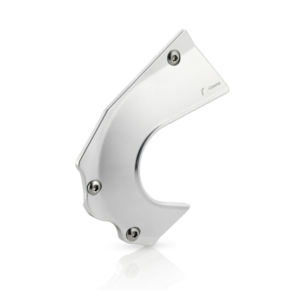In alluminio ricavato dal pieno, finemente lavorato e anodizzato, il carter pignone Rizoma permette di mostrare parte della trasmissione. Un elemento di carattere per la speciale linea Scrambler.