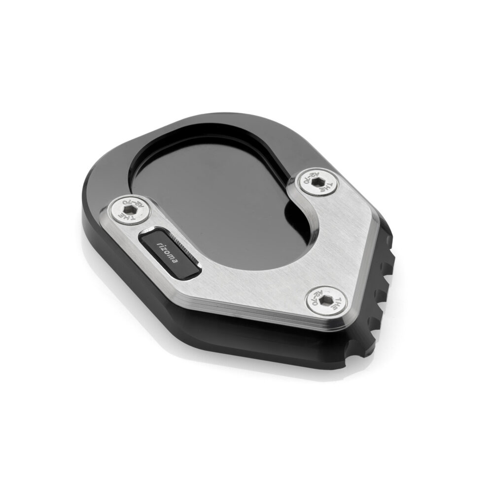 L’estensione base cavalletto laterale Rizoma, realizzata in alluminio e ricavata dal pieno, ha forma e dimensioni studiate con particolare attenzione ad evitare possibili interferenze con il pilota durante la guida. Un dettaglio tanto funzionale quanto esteticamente curato.