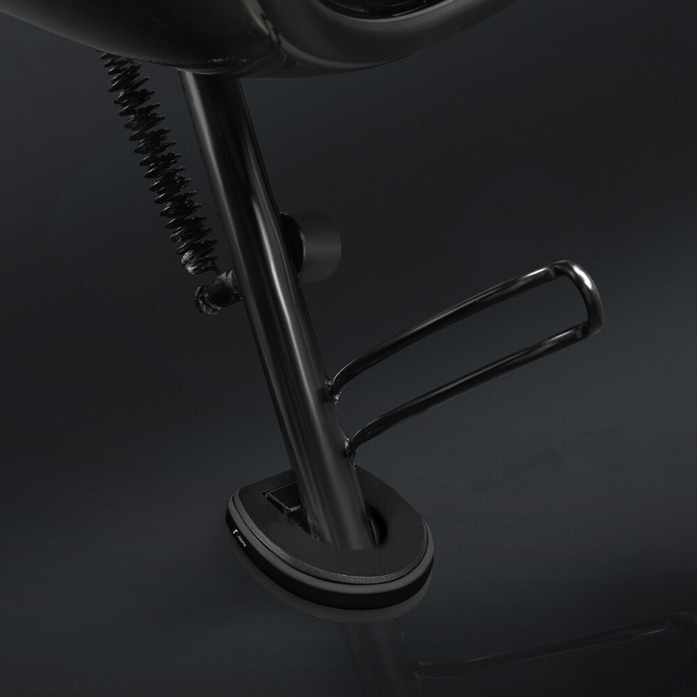 L'estensione del cavalletto laterale è realizzata in alluminio e permette di posteggiare Vespa con più sicurezza. In particolare, il design Rizoma prevede una base più ampia per aumentare la stabilità, anche in caso di asfalto bollente o pavimentazione scivolosa.