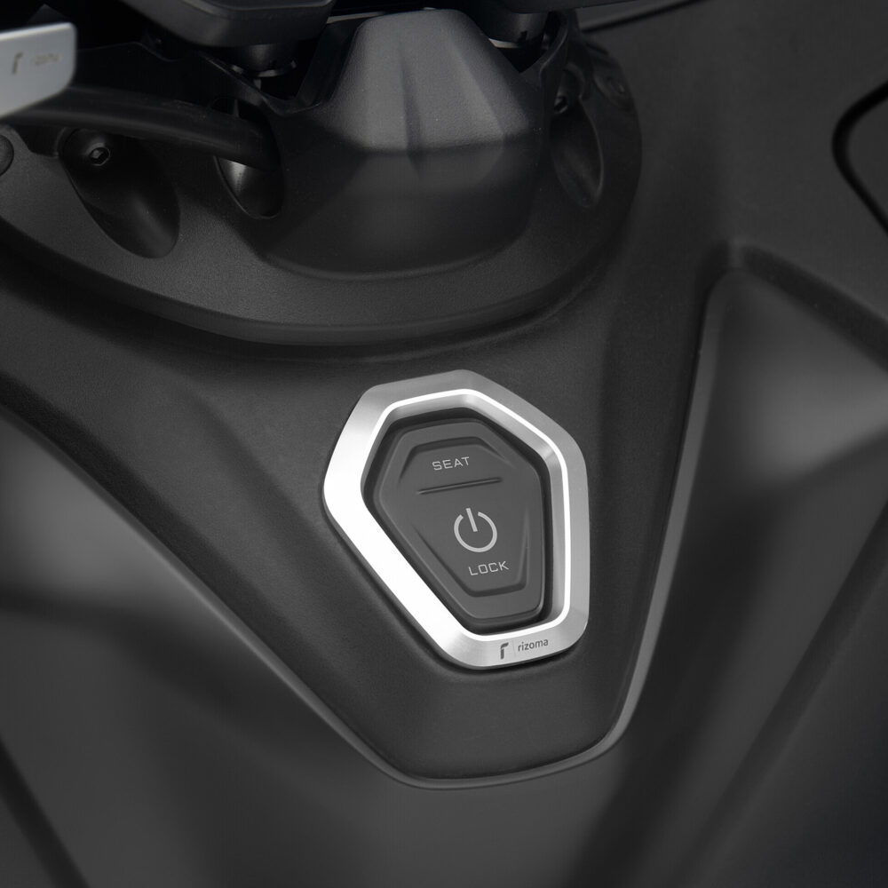 La cover per il pulsante di accensione è in alluminio ricavato dal pieno. Un dettaglio di puro design, che enfatizza l'impatto visivo frontale. Disponibile nelle varianti colore black e silver.