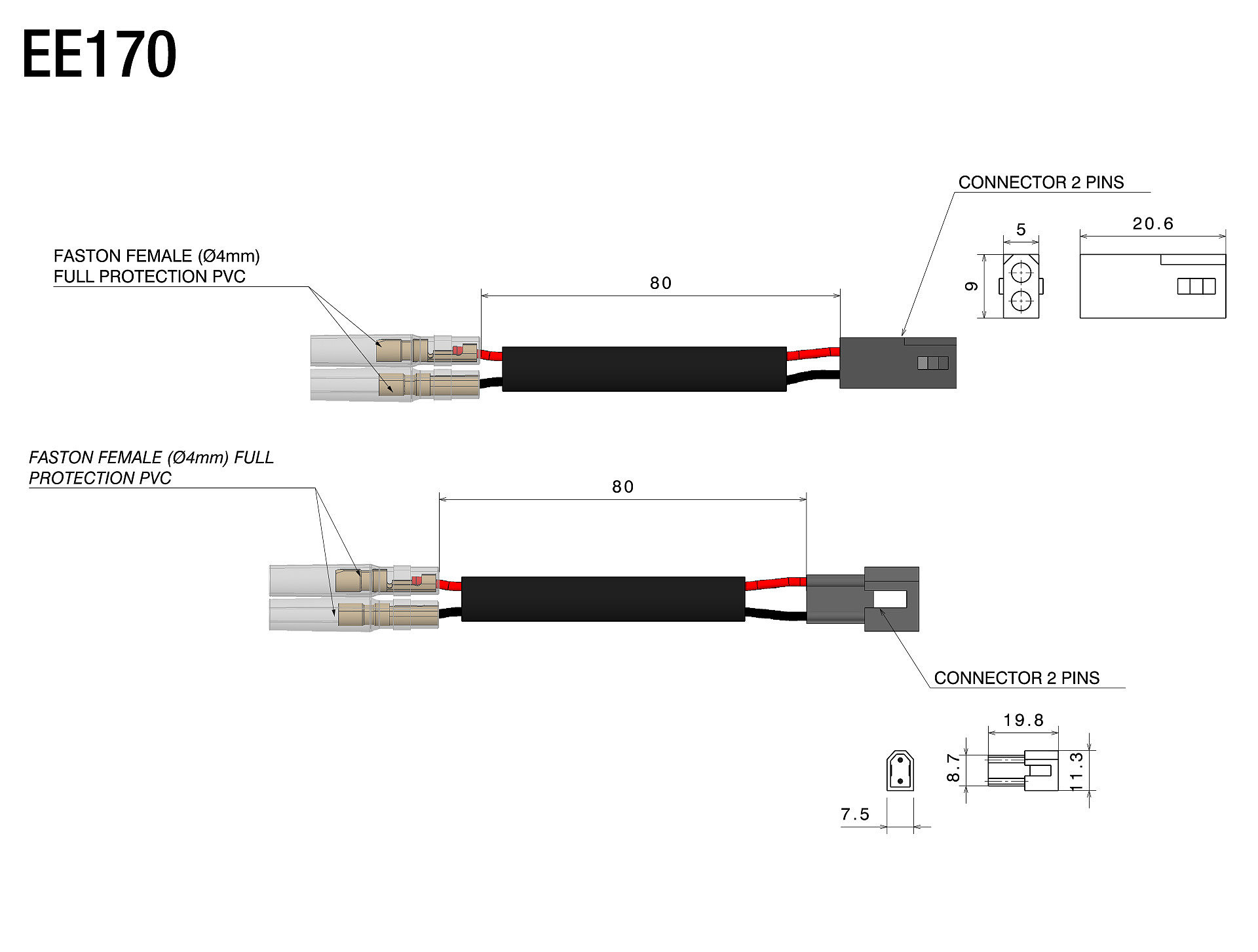 E' consigliato verificare i disegni tecnici prima dell’acquisto. Ogni kit comprende 2 cablaggi. Per montare 4 indicatori di direzione è necessario acquistare 2 kit.