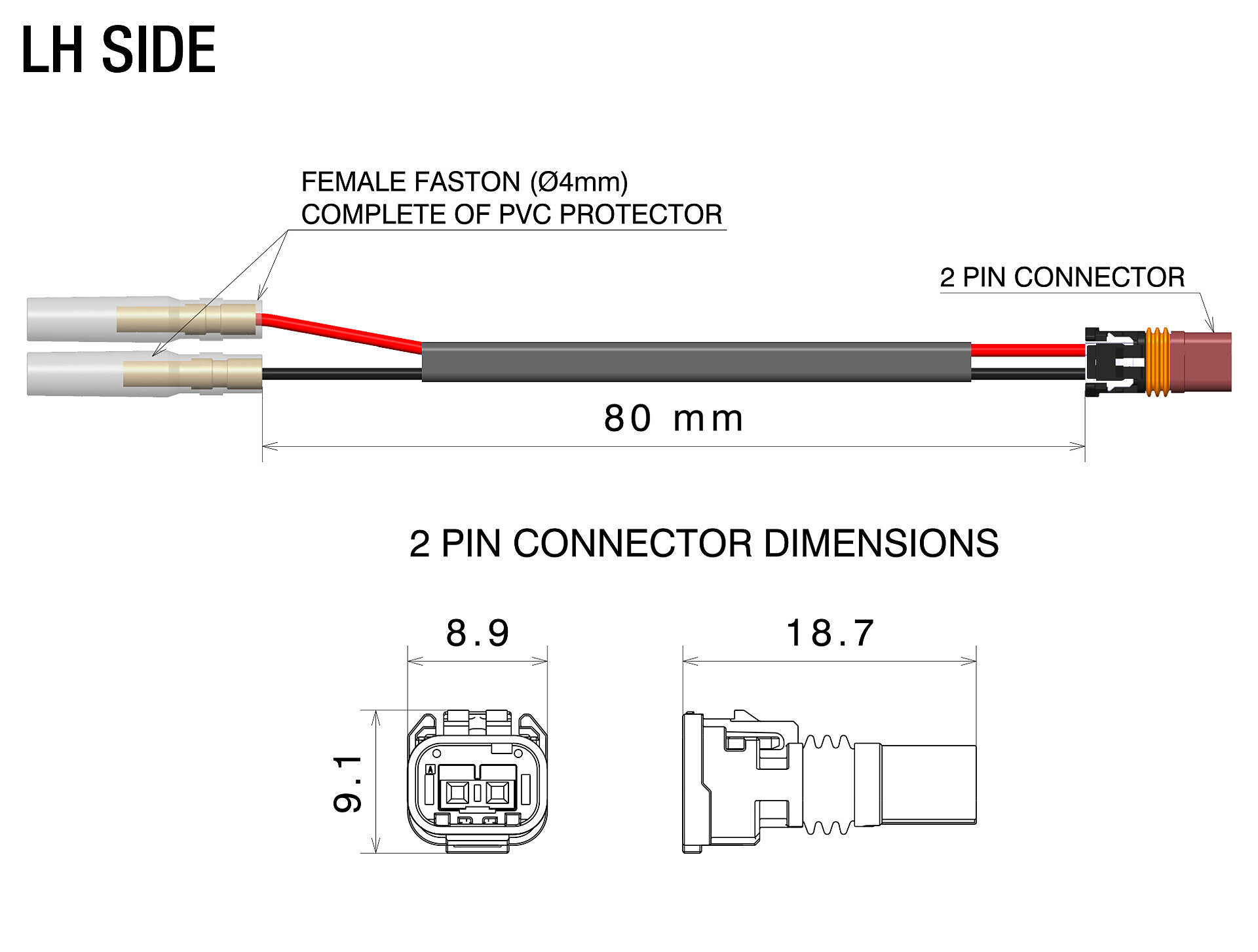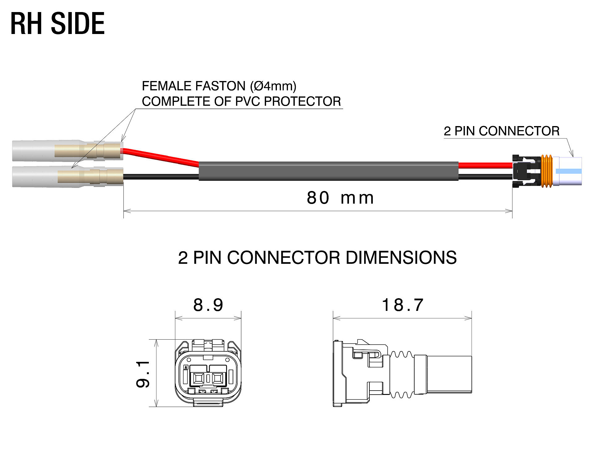 E' consigliato verificare i disegni tecnici prima dell’acquisto. Ogni kit comprende 2 cablaggi. Per montare 4 indicatori di direzione è necessario acquistare 1 kit.