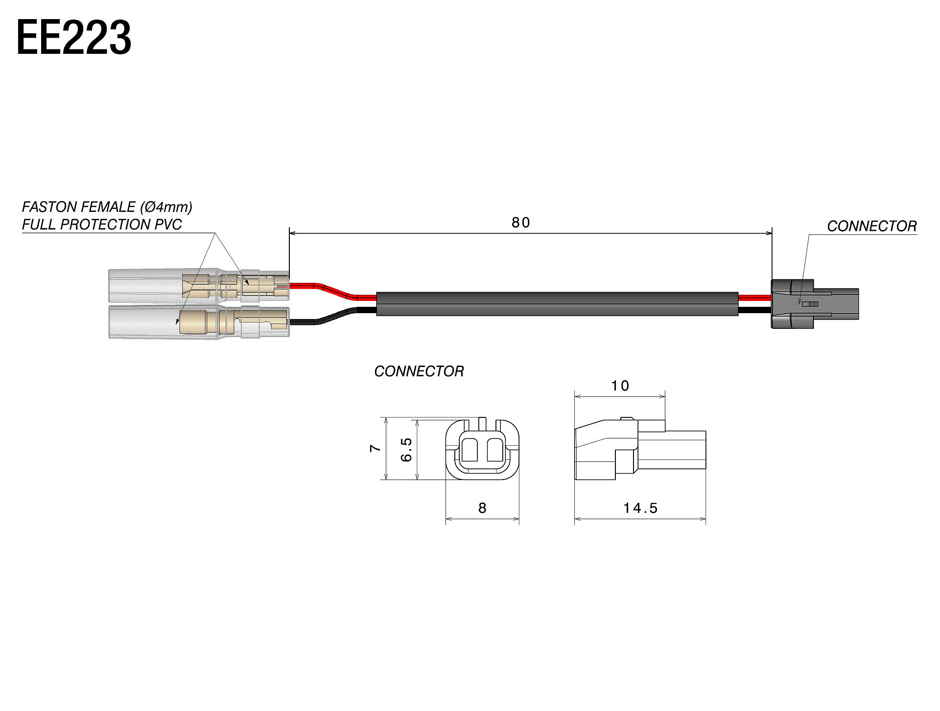 E' consigliato verificare i disegni tecnici prima dell’acquisto. Ogni kit comprende 2 cablaggi e 6 connettori T-Tap. Per montare 4 indicatori di direzione è necessario acquistare 2 kit.