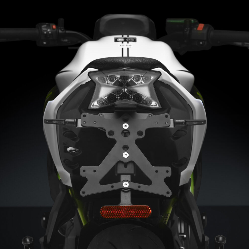 Kit completo di piatto targa 173x173 mm, piatto targa USA 166x89,5 mm, supporti per indicatori di direzione Rizoma, luce targa LED SMD (omologata) e catarifrangente. Attenzione: per conformità alla normativa EURO4 si consiglia l'acquisto del Kit catarifrangente laterale EE400H.