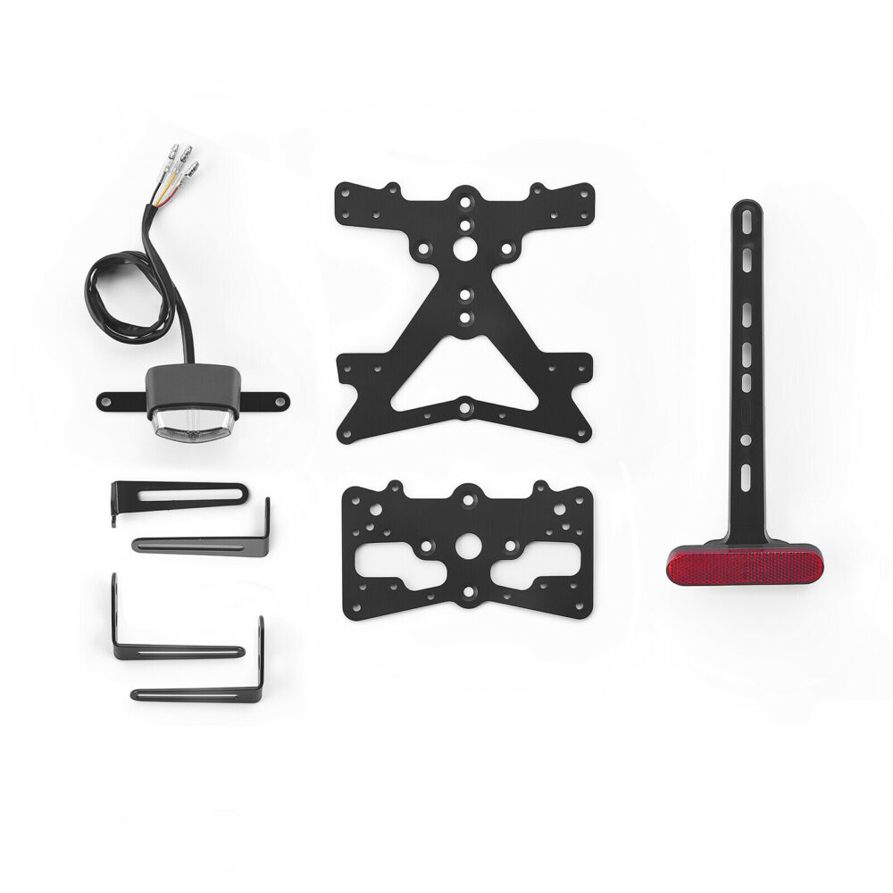 Kit completo di piatto targa 173x173 mm, piatto targa USA 166x89,5 mm, supporti indicatori di direzione OEM/Rizoma, catarifrangente, faro posteriore con luce targa LED SMD (omologata) integrata e cover sottosella. Per l’installazione vanno rimossi sia il parafango che il faro OEM posteriori. Compatibile con sella monoposto OEM.