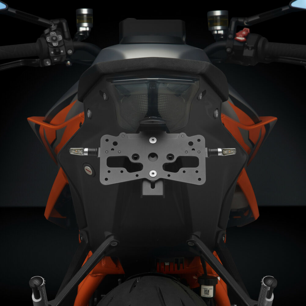 I porta targa Rizoma di tipo PTS sono compatibili solo con piatti targa di piccole dimensioni (ad esempio targa USA da 166x89,5 mm), in quanto sono stati sviluppati con un supporto del piatto più corto.