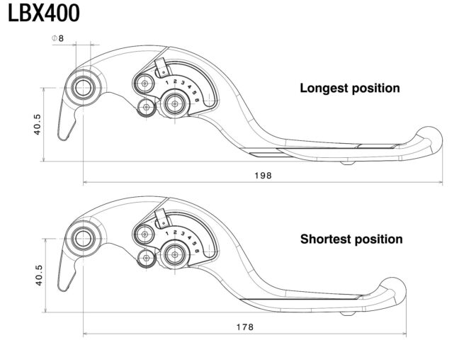 Le leve Adjustable Plus sono sono state progettate per offrire il massimo del comfort in termini di grip e regolazione in base al proprio stile di guida. In particolare, oltre al sistema di controllo della distanza leva-manopola, posizionato superiormente per permettere una maggiore accessibilità, è stato predisposto un sistema aggiuntivo a scorrimento che permette la regolazione in lunghezza della leva stessa. Inoltre, nel kit è compreso un inserto in gomma studiato per eliminare il gap che si crea quando la leva si trova nella sua massima estensione (fino a 20 mm), prevenendo così l’eccessiva usura dei guanti.