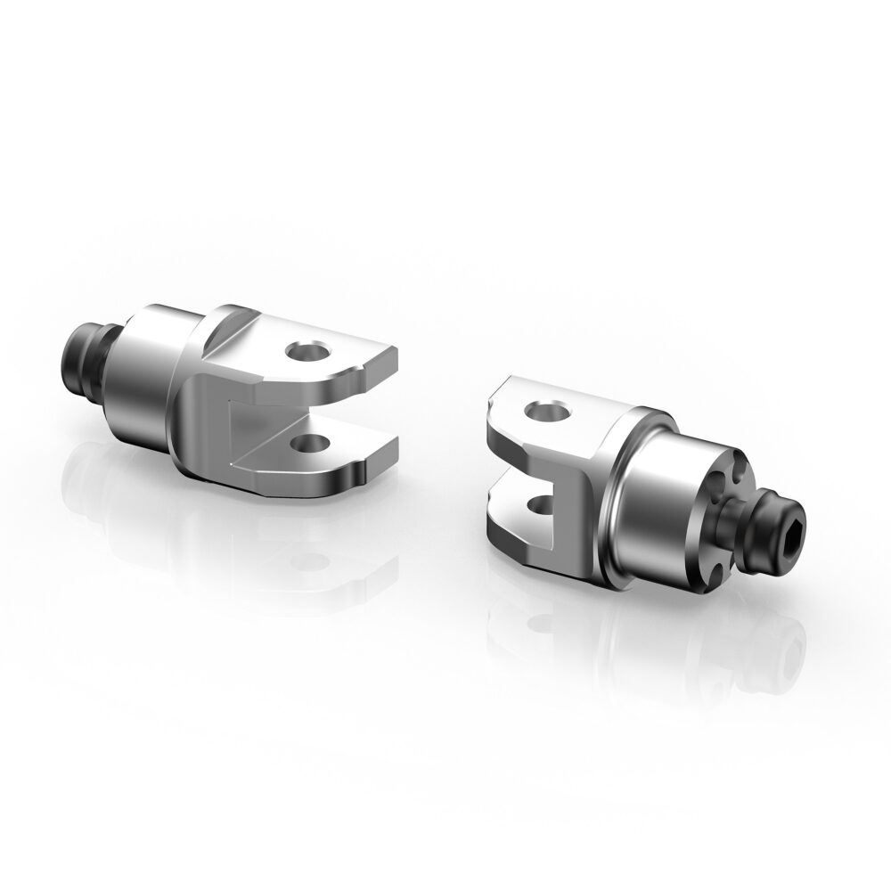 Tutti gli adattatori pedivelle sono realizzati in alluminio ricavato dal pieno e studiati in modo specifico per i differenti modelli di moto, garantendo così la perfetta compatibilità e la miglior soluzione di fissaggio. Gli adattatori Rizoma permettono di montare le pedivelle Rizoma sulle pedane OEM. Le pedivelle Rizoma e i relativi kit di montaggio, con e senza sistema eccentrico di regolazione, hanno design ispirato al mondo racing. Per questo motivo, una volta montate, le pedivelle non sono perfettamente parallele rispetto al suolo, ma appaiono leggermente inclinate verso l’alto. Questa inclinazione è stata studiata per prevenire lo scivolamento del piede verso l’esterno durante la guida o in curva.