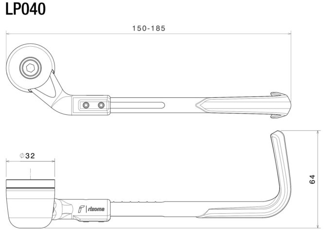 La parte estrema Proguard System® Rizoma è realizzata in Delrin®, ed è sostituibile, mentre il corpo di fissaggio al manubrio è realizzato in alluminio ricavato dal pieno con finitura nero opaco.