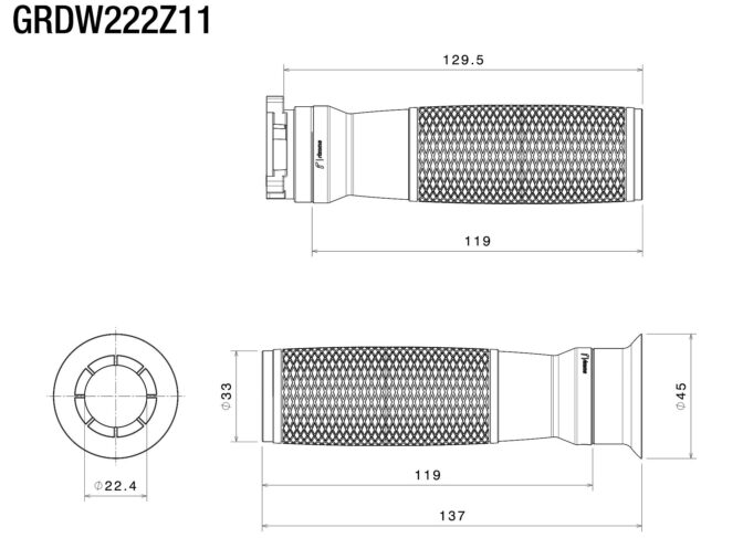 In alluminio, interamente ricavata dal pieno, la manopola Urlo (Ø 22 mm), è caratterizzata da una forma ergonomica e la particolare lavorazione della gomma garantisce il massimo grip. Disponibile in differenti colori, ottenuti tramite processo di anodizzazione che ne garantisce una miglior resa estetica nel tempo. La versione Ride by Wire è, inoltre, compatibile con sistema di controllo elettronico.