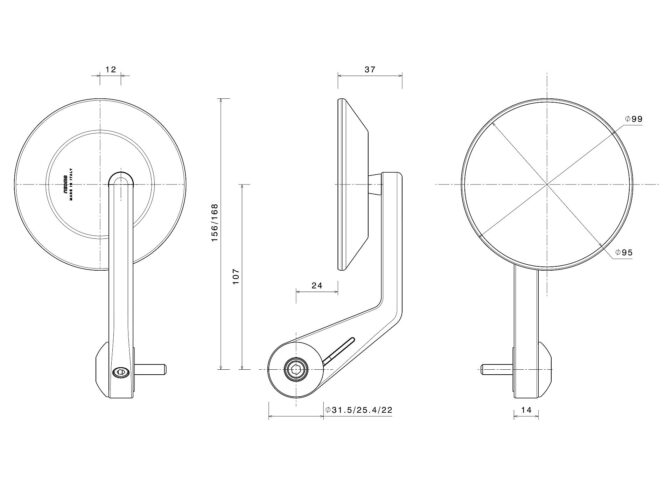 Lo specchio retrovisore Eccentrico è realizzato in alluminio ricavato dal pieno attraverso lavorazioni 3D di precisione. Linee moderne che attualizzano uno stile classico e conferiscono dinamicità all’insieme, lo shape dell’asta che contribuisce a renderne organico il design. Il vetro antiabbagliante ed il sistema di regolazione garantiscono versatilità e comfort. Conforme alle norme di omologazione europea.