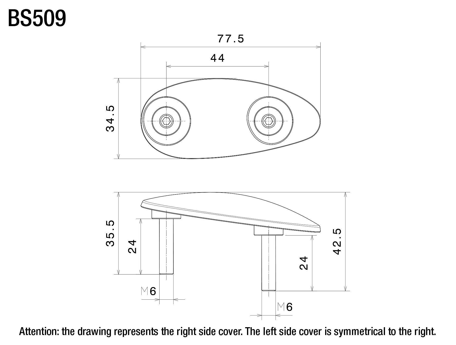 In caso di sostituzione specchi OEM installandone di nuovi a manubrio, Rizoma raccomanda l’acquisto del kit tappi foro specchio (realizzati in alluminio), che permette di coprire elegantemente i fori lasciati sulla carena.